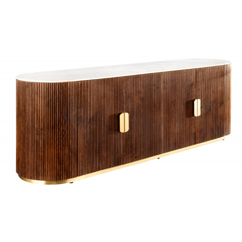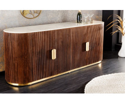 GATSBY exkluzivní komoda z masivního mangového dřeva s bílým mramorovým povrchem o délce 180 cm je luxusní a elegantní kus nábytku, který přináší do vašeho interiéru sofistikovanost a nadčasovou krásu. Tento jedinečný kousek nábytku dokonale spojuje tradiční materiály s moderním designem.