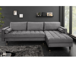 Németországból importált, a nyugati piacra készült, méretek: b260xh155xh84 cm, ülésmagasság 45 cm, ülésmélység 54 cm, ülésszélesség 240 cm, háttámla magassága 40 cm, lábmagasság 16 cm, anyag: bársony, huzatanyag anyagi összetétele: 100% poliészter szürke színben, teljesen kárpitozott - térben is használható, tömör lakkozott falábak, stabil váz FSC minősítésű bükkfából és forgácslapból, elegáns, kúpos fekete és arany lábak, kiváló minőségű hab poliéter párnázat, Nosag acél rugómag + ülés kényelmes légáteresztő pur, hab párnázás sűrűsége 45kg/m3, közepesen kemény ülés, magas kartámaszok hangulatos légkört biztosítanak pihenés közben, exkluzív lakberendezési koncepció, karizmatikus luxus kanapé klasszikus, mégis modern, időtlen stílusban, könnyű karbantartás használati utasítással, 5 párnával, gyártó Invicta Interior.