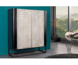 Fedezze fel az elegancia és a funkcionalitás tökéletes kombinációját a 120 cm széles Crocodile komóddal, amely kiváló minőségű mangófából készült, vonzó szürke-fekete színkombinációban. Ez a komód nemcsak praktikus tárolóhellyé válik, hanem egy olyan dizájnelemmé is, amely új életet lehel otthonába.