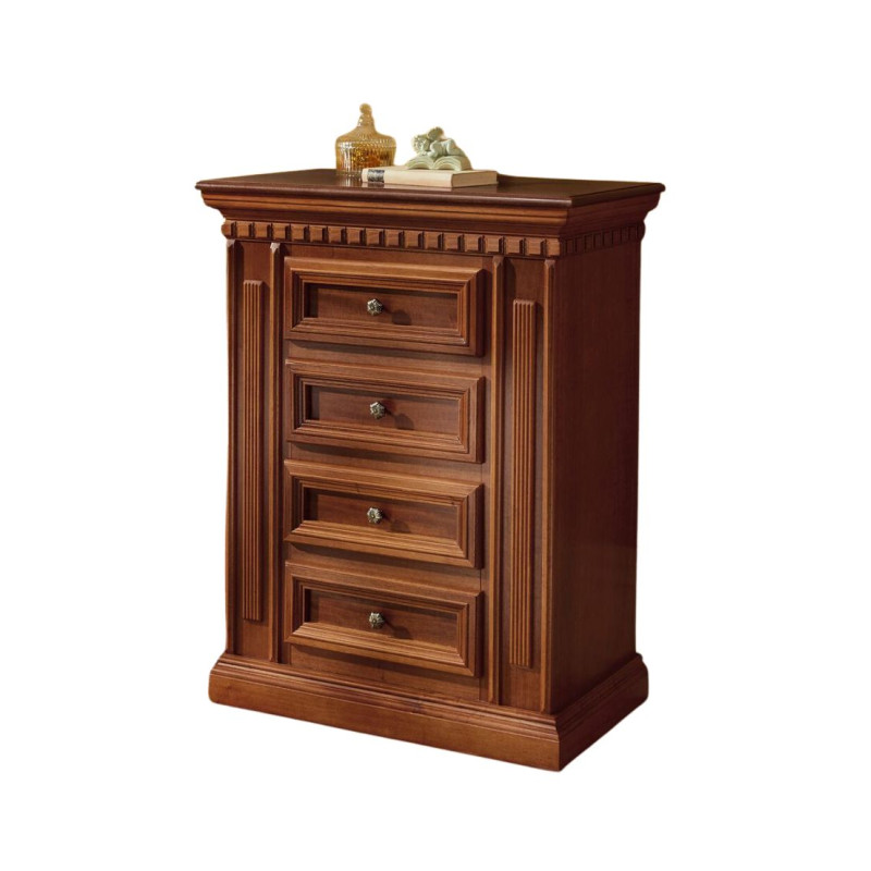 • Gyönyörű díszítő koszorú: A komód tetejét egy finom karnis díszíti, amely kiemeli esztétikai értékét és kiemeli a többi közül.