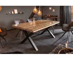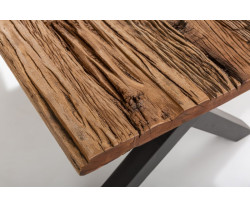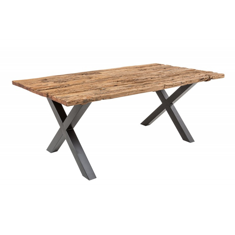 Ez a gyönyörű étkezőasztal FSC minősítésű újrahasznosított fából készült, natúr színű lakkozással kezelve. Az asztal porszórt fémvázzal rendelkezik, amely nemcsak erősít, hanem modern megjelenést is kölcsönöz a bútornak. A természetes megjelenés és az egyedi kézi megmunkálás révén a fa kifejező festése kiemeli a termék szépségét.