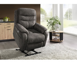 Németországból importált, a nyugati piacra készült, méretek: W90xD89-165xH100cm, ülésmagasság 50cm, ülésmélység 49cm, ülésszélesség 56cm, anyag erős és kényelmes szövethuzat bőr megjelenésű 100% poliészter fekete-barna színben, masszív stabil vas és fa váz, acélrugós mag + kényelmes lélegző PUR, elektromos pozíciószabályozás a vezérlőgombokkal és a székre, dönthető funkció a könnyű be- és kiszálláshoz, 2 motoros - a lábtartó és a háttámla egymástól függetlenül állítható, elektromos hátradőlő mechanizmus, a szék teljesen automatikus, a szék alkalmas az idősek és más személycsoportok számára, akik igazi kényelmet szeretnének tapasztalni pihenés és kikapcsolódás közben, kényelmes ülés, könnyű karbantartás, súly kb. 50kg, teherbírás 180kg-ig, gyártó Bader Németország.