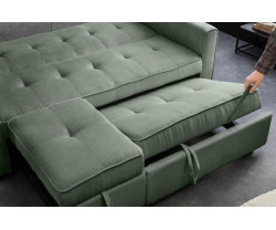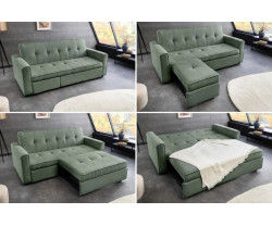 Modern dizájnjának és univerzális zöld színének köszönhetően a kanapé könnyedén beilleszthető bármilyen belső stílusba. Akár a minimalista, a skandináv vagy a klasszikus stílust kedveli, ez a kanapé nagyszerű kiegészítője lesz otthonának. Ideális választás azok számára, akik a funkcionalitás és az esztétika kombinációját keresik.