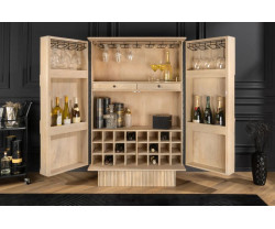 Fedezze fel a szépséget és a funkcionalitást ezzel az ART DECO bárszekrénnyel, amely nemcsak kedvenc italai és poharai tárolására szolgál, hanem otthona stílusos központi elemévé is válik. Minőségi mangófából készült, natúr fehér színű, ez a szekrény eleganciát és időtlen dizájnt visz otthonába.