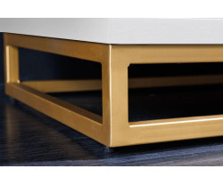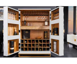 A GOLDEN SUNSET bárszekrény tökéletesen megmunkált mangófából készült, amelyet kiváló minőségű lakkal vontak be a fokozott tartósság és fény érdekében. A kiválasztott alkatrészek, például a fogantyúk és a polcok aranyozása gyönyörű kontrasztot alkot a szekrény fehér színével. Ez a kombináció modern megjelenést kölcsönöz a szekrénynek, amely bármilyen belső térbe illik, legyen az elegáns nappali vagy hangulatos konyha.