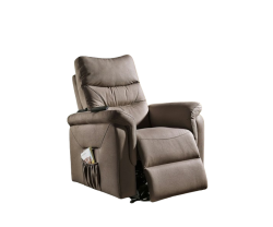 Elektrycznie odchylany fotel telewizyjny w kolorze brązowym jest wykonany z solidnej żelaznej ramy i oferuje wygodne i relaksujące siedzenie. Dzięki elektrycznemu sterowaniu pozycją, funkcji odchylania i jednocześnie ruchomemu podnóżkowi i oparciu, jest idealny dla osób starszych i każdego, kto chce maksymalnego komfortu podczas relaksu.