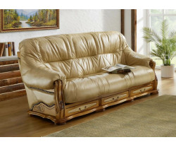 Sofa wyposażona jest w wygodną piankową wyściółkę, która zapewnia optymalny komfort siedzenia. Piękne, skórzane pokrycie nadaje produktowi luksusowy wygląd i jednocześnie ułatwia pielęgnację. Oparcie również wykonane jest z naturalnej skóry, co pozwala na ustawienie sofy w dowolnym miejscu w pomieszczeniu bez obaw o estetykę.