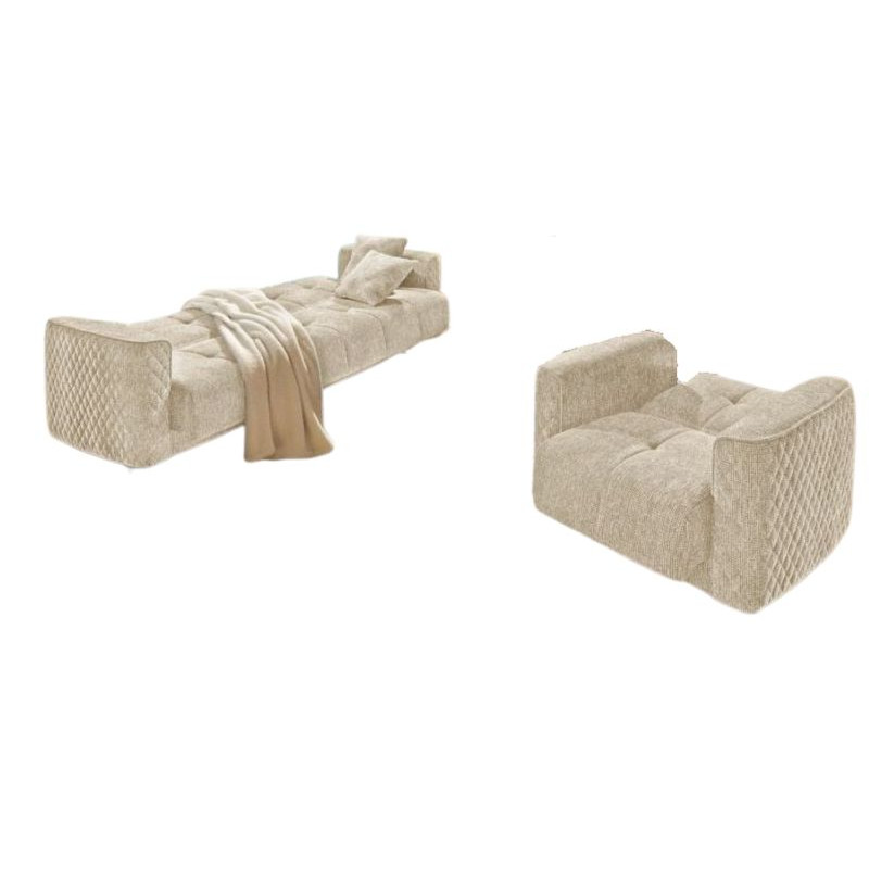 Ten dwuczęściowy zestaw wypoczynkowy posiada stabilną drewnianą podstawę, która gwarantuje trwałość i wytrzymałość. Rdzeń sprężynowy Bonnell w połączeniu z piankowym wypełnieniem zapewnia optymalny komfort i wsparcie, a pikowane pokrycie po bokach nadaje mu elegancki wygląd.