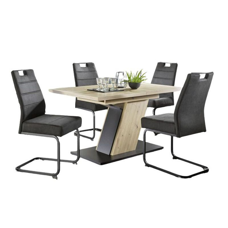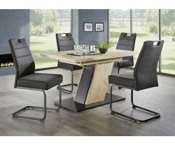 Odkryj elegancję i wygodę z nowoczesnym zestawem stołu i krzeseł Bennela. Zaprojektowany z myślą o idealnej harmonii, ten stylowy zestaw łączy wysokiej jakości materiały z minimalistycznym wzornictwem, które pasuje do każdego wnętrza. Stół oferuje przestronną powierzchnię do rodzinnych obiadów lub spotkań biznesowych, a ergonomiczne krzesła zapewniają maksymalny komfort. Idealny wybór dla osób poszukujących funkcjonalności i estetyki w jednym. Zestaw Bennela przekształci Twoją jadalnię w przytulne i inspirujące miejsce spotkań i relaksu.