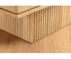 Barek ART DECO wykonany jest z drewna mango, znanego z trwałości i pięknej faktury. Bielone wykończenie nadaje mu nowoczesny wygląd, a jednocześnie pozwala na łatwe dopasowanie do różnych stylów wnętrz. Tylny panel wykonany jest z wysokiej jakości forniru, co gwarantuje stabilność i długą żywotność produktu.