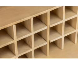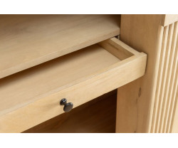 Barek ART DECO wykonany jest z drewna mango, znanego z trwałości i pięknej faktury. Bielone wykończenie nadaje mu nowoczesny wygląd, a jednocześnie pozwala na łatwe dopasowanie do różnych stylów wnętrz. Tylny panel wykonany jest z wysokiej jakości forniru, co gwarantuje stabilność i długą żywotność produktu.