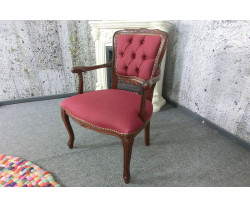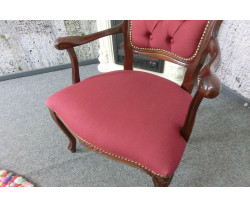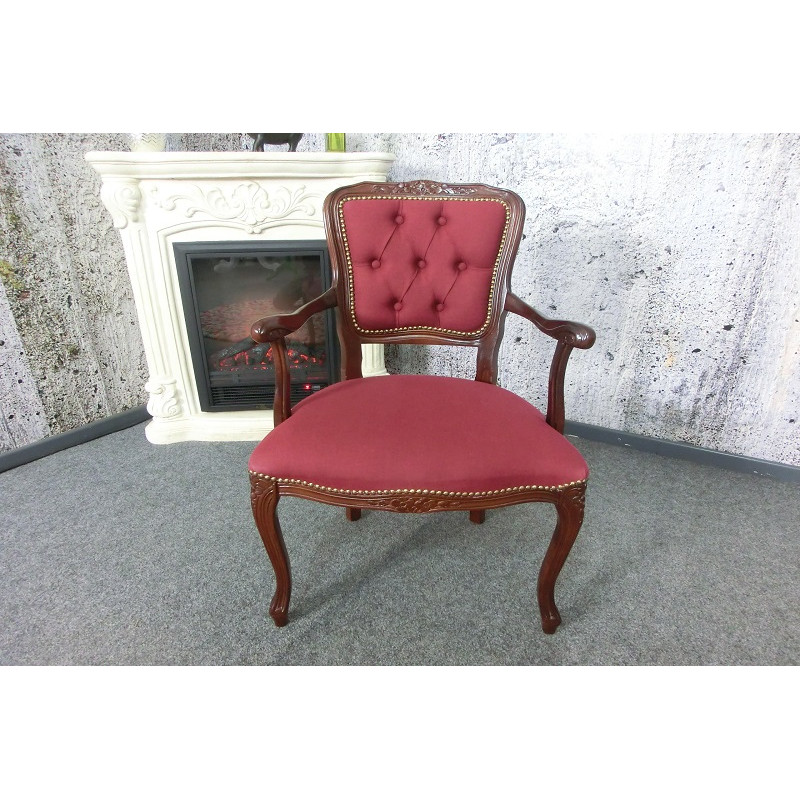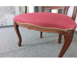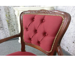 Dovezené z Nemecka, vyrobené v Taliansku pre západné trh, rozmery: Š54xH45xV87cm, výška sedu 44cm, hĺbka sedu 40cm, výška opierky chrbta 44cm, šírka sedu 45cm, materiál čalúnenie jemná odolná látka 80% bavlna, 20% polyester vo farbe bordó, bukové drevo v dekore orech , vlnovcové oceľové pružinové jadro Federkern Komfort + sedák pevný priedušný pur, krásna replika z kvalitných použitých materiálov, ľahká údržba, výrobca Domus Mobili Italy.