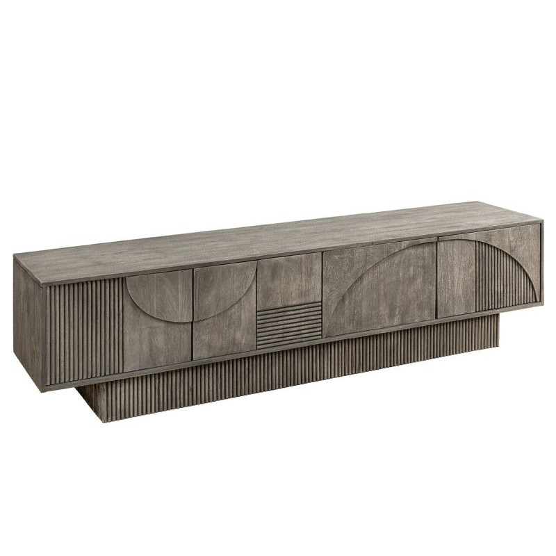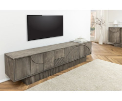 Objavte kúzlo elegancie a funkčnosti s naším ART DECO TV stolíkom, ktorý sa stane nielen praktickým, ale aj dizajnovým prvkom vášho interiéru. Tento stolík s dĺžkou 200 cm je vyrobený z kvalitného mangového dreva, ktoré dodáva nábytku prírodný vzhľad a odolnosť. S dymovo šedým vzhľadom sa perfektne hodí do rôznych štýlov interiéru, od moderného až po tradičné.