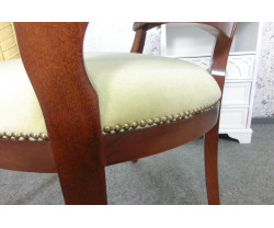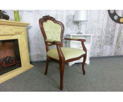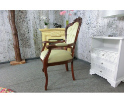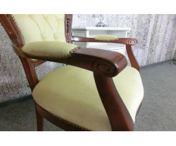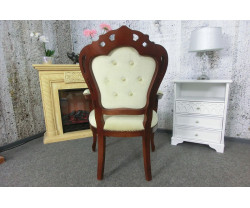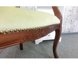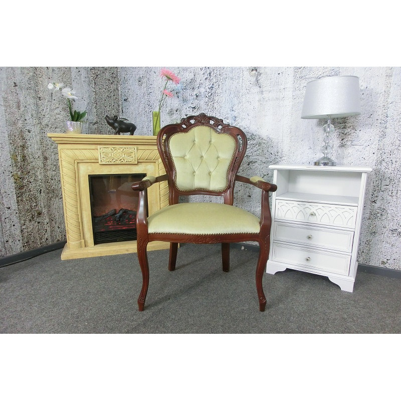 Dovezené z Nemecka, vyrobené v Taliansku, rozmery: Š63xH49xV107cm, výška sedu 50cm, šírka sedu 48cm, hĺbka sedu 45cm, výška opierky chrbta 60cm, materiál čalúnenia jemná a odolná látka 70% polyester a 30% bavlna vo farbe bežovej, bukový rám a nohy lakované v dekore orech s jemnými ručne vyrezávanými akcenty, vlnovcové oceľové pružinové jadro + pevný pohodlný priedušný pur, elegantný bronzové nitovanie, krásna replika dobového nábytku, ľahká údržba, výrobca Domus Mobili Italy.